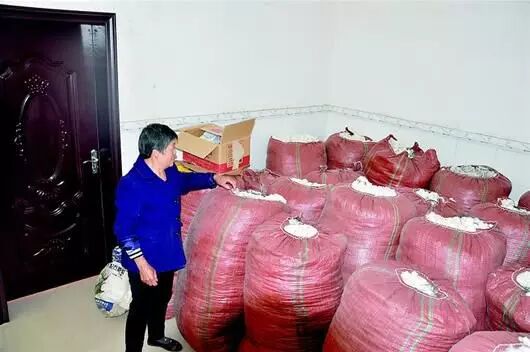 圖為:因價格不好,天門市陳垱村楊太婆家仍囤著21包棉花。(本版攝影:記者 郭習松)