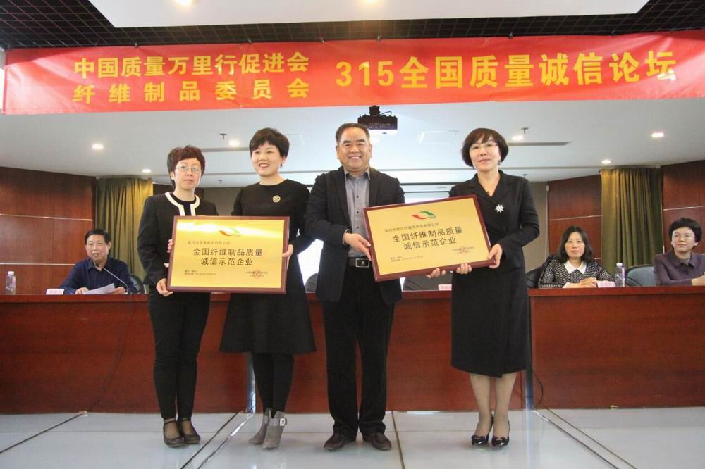 為“全國纖維制品質量誠信示范企業”授牌和頒發了榮譽證書。