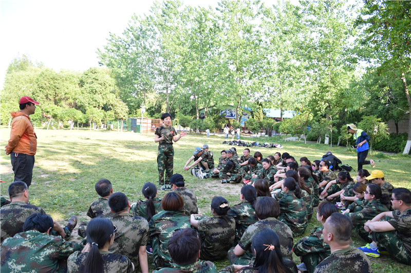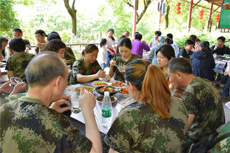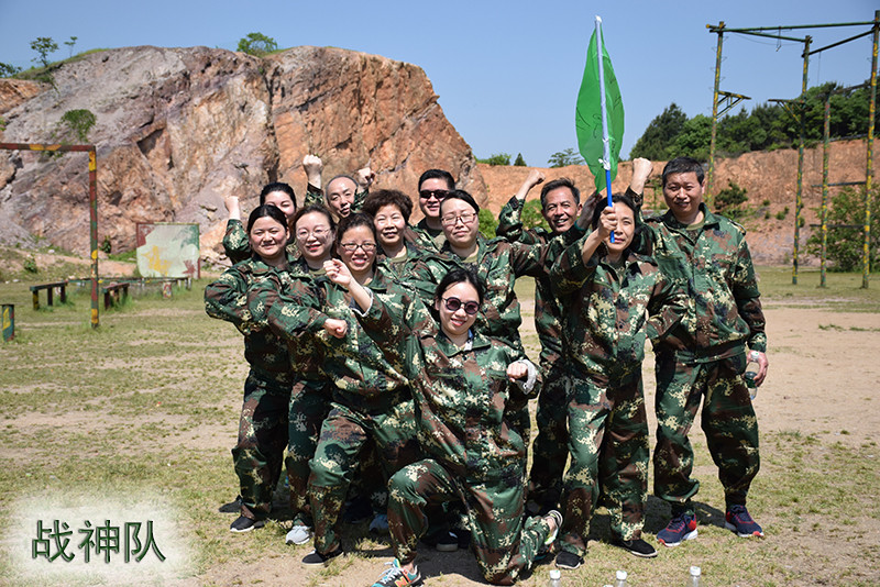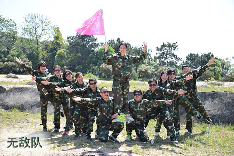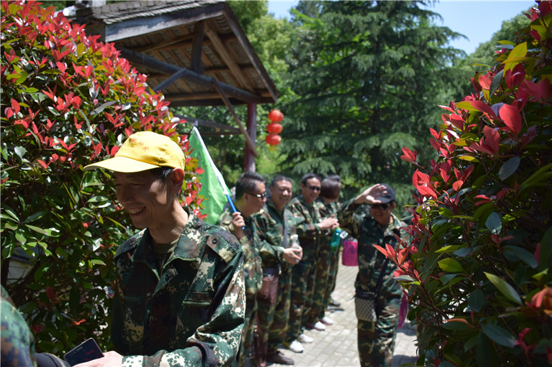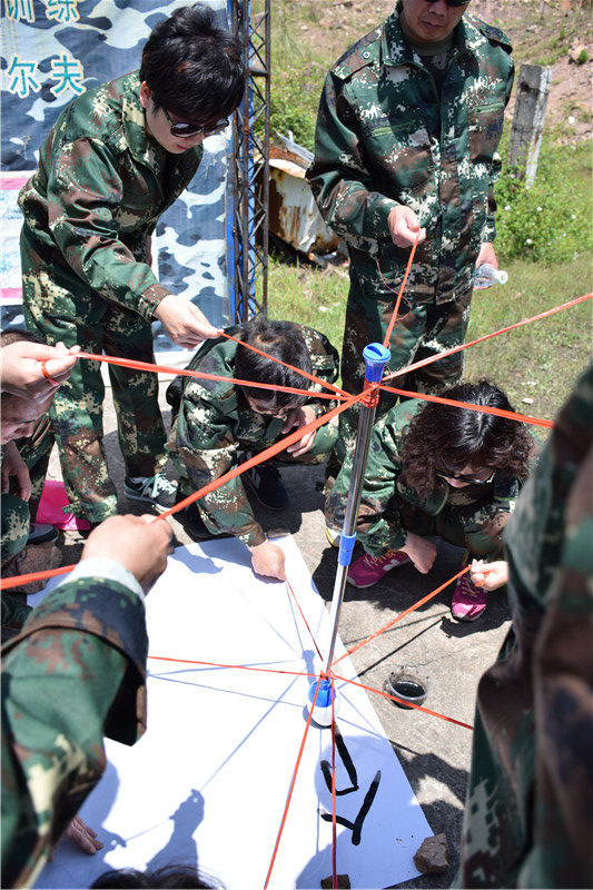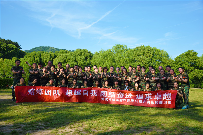 追求卓越”的戶外拓展訓練。早上8:00整,銀萊團隊身著自產的軍訓服裝---胸前有紅旗標的迷彩鳥眼衫和迷彩服,